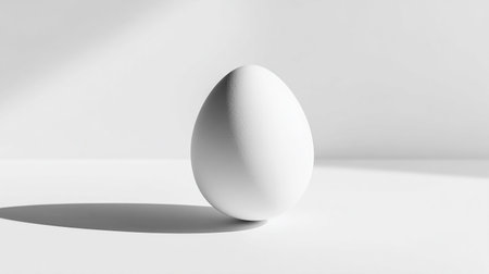 A captivating minimalist image featuring a single white egg on a soft neutral background, perfect for food-related themes, design projects, and culinary arts.
