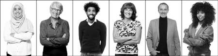 Group of people in front of a white background