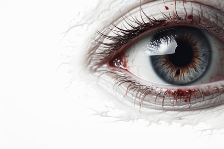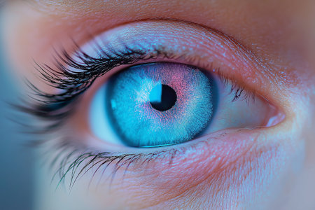 This striking image captures the intricate details of a human eye, highlighting stunning textures, colors, and patterns in a dramatic close-up shot.