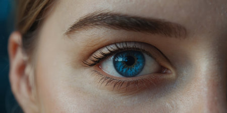AI Generated. Woman's blue eyes Ophthalmology and beauty concept Close-up view for wallpaper, poster, banner, ad