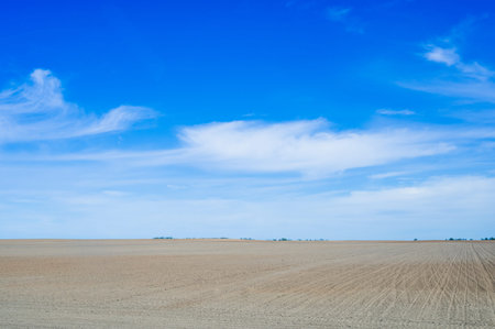 Plowed field against the blue sky.