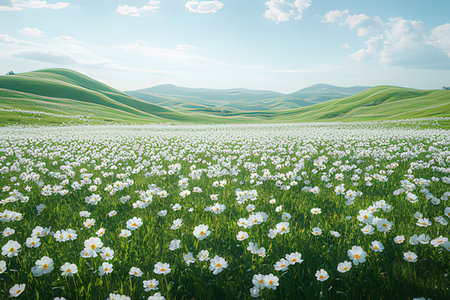 Beautiful wild daisy field in the morning on a meadow