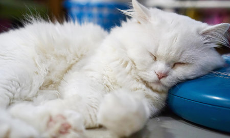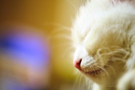 White cat sleeps close up marco