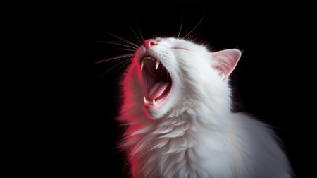Generative AI : white cat yawning