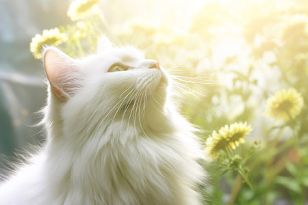 Close-up of cute cat gazing at something with beautiful bokeh background, Generative AI