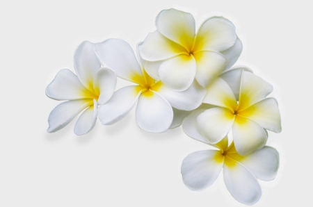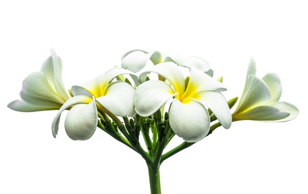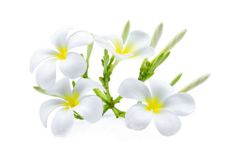 beauty bouquet plumeria flower white and yellow petals. close up spa flora aroma scent blossom in botany garden. Isolated on white background.