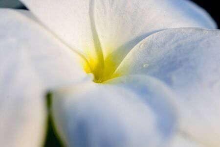 Eaxtreme Close up of beautiful white Bridal Bouquet, Plumeria pudica flower with water drops, copy space