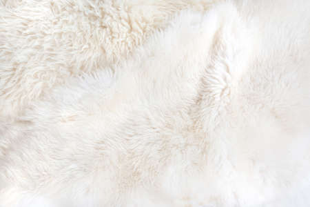 Background picture of a soft fur white carpet. wool sheep fleece closeup texture background,Fake color beige fur fabric. top view. 2019