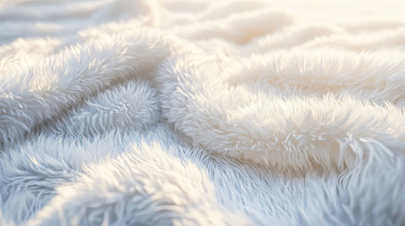 Close-up of luxurious plush white fur close-up, inviting warmth and softness.