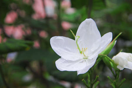 White flowers snowy orchid tree with water drop blooming in nature garden outdoor background
