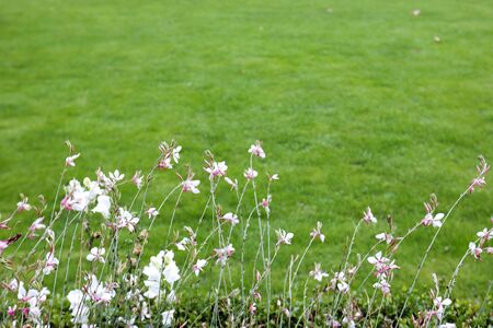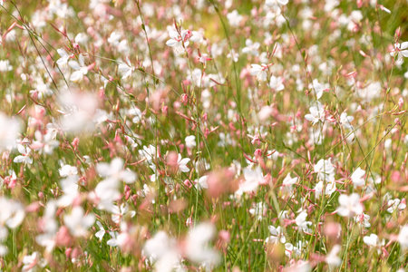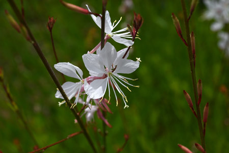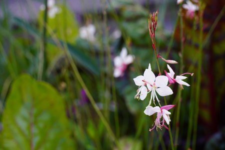 Gaura flowers. Onagraceae perennial plants. White four-petaled flowers bloom for a long period from early summer to autumn, providing a cooling sensation during the hot season.