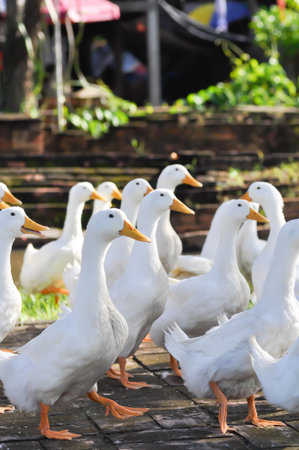 Duck group animal Background duckling collected together outdoor sunlight white yellow