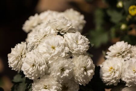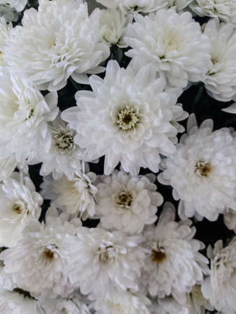 Light yellow chrysanthemum flowers from above view. Beautiful vintage style chrysanthemums background