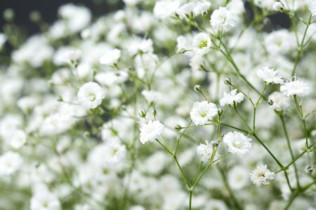 White flowers of the gypsophila. Gentle spring background. Soft focus.