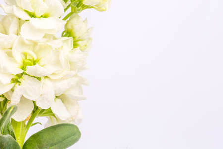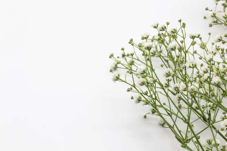 A gypsophila -a small white flowers on the white background. Beautiful floral composition with gypsophila. Space for the text.