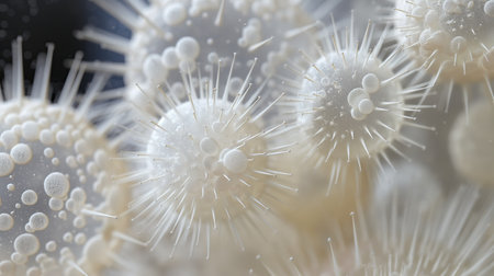 Mushroom cultivation. Macro. Fungi culture on petri dish plate, top view. Mycelium of mushrooms on agar in a petri dish