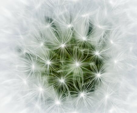 Dandelion flower head. White dandelion on bright background. Macro photo