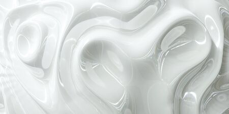 Liquid abstract white background. Smooth glossy texture 3D rendering . 3D illustration