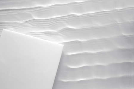 A clean, minimalist white surface with soft, diffused light creating gentle reflections and subtle shadows.