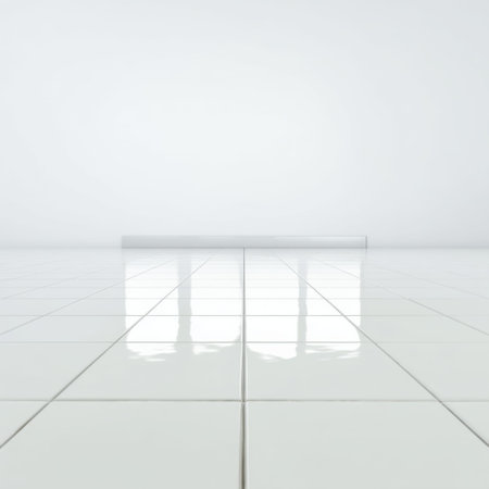This image features a clean and modern white floor tile, showcasing a minimalistic design with soft light and simple lines, perfect for various interior styles.