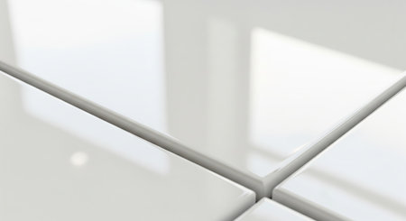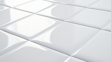Trendy white color 2026 year. Close up view of new shiny bright white block tiles. Abstract clean background for minimalist decor, surface design, or presentation..