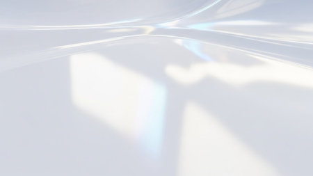 Smooth white abstract background with gentle curves and subtle rainbow light reflections creating a luminous and...
