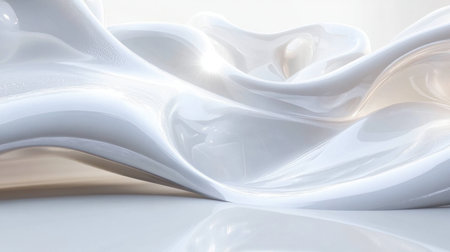 A captivating abstract image featuring a smooth, white fluid surface with elegant curves and reflective light, ideal for creative projects and modern design concepts.
