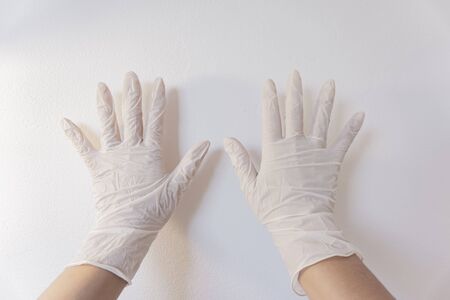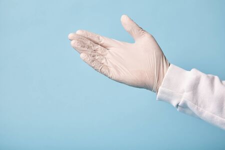 Hand in white glove, protection from the virus, theme of hygiene and protection against coronavirus, covid-19