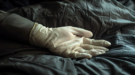 Closeup shot of a healtcare worker stretching his surgical gloves