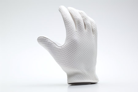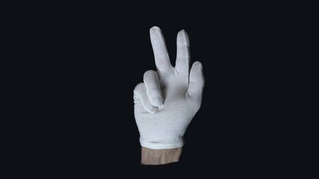 Hand with white glove showing victory sign. Counting hand. Two. Part of set.