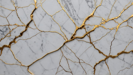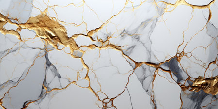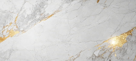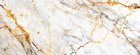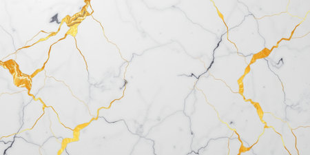 This image features an elegant white marble surface adorned with striking golden veins, perfect for upscale interior designs or artistic projects.