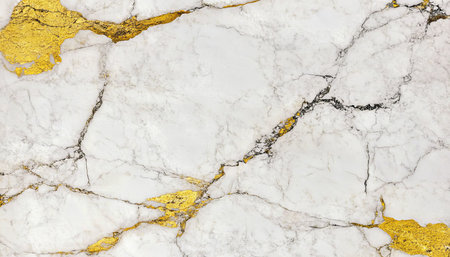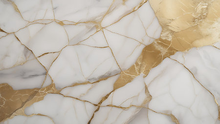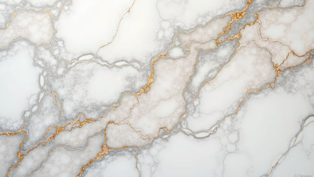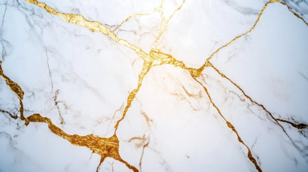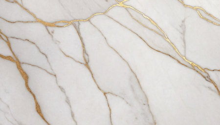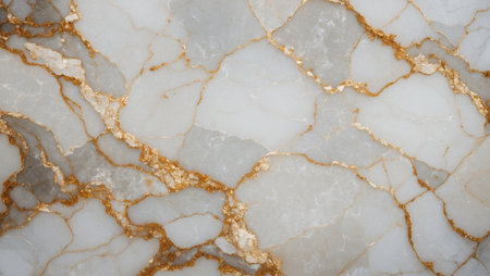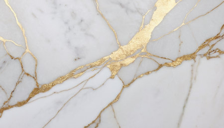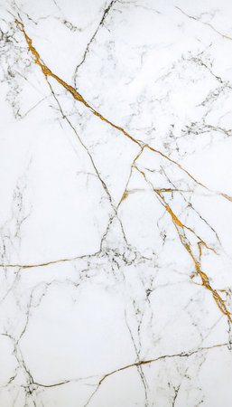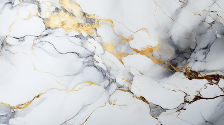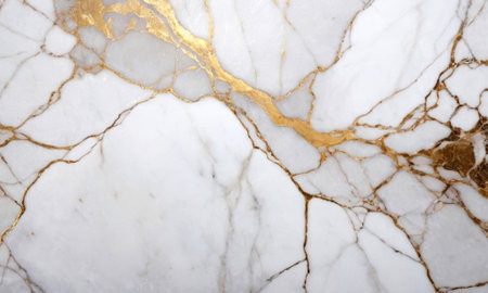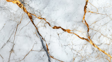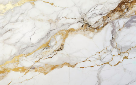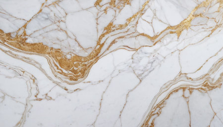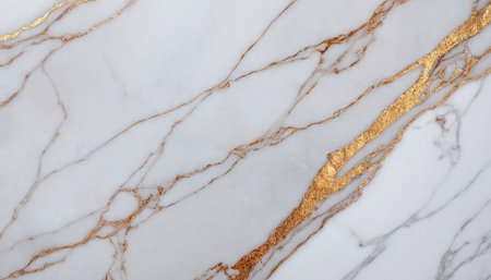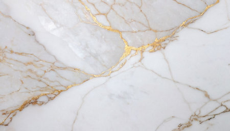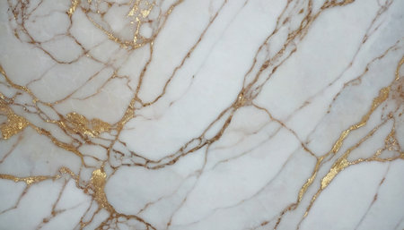 Stunning close-up of elegant white marble featuring beautiful golden veins, perfect for luxury design projects, interior decor, and artistic backgrounds.