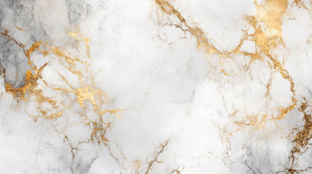 This elegant marble texture features intricate gold veins set against a soft gray and white background, perfect for luxury design projects.