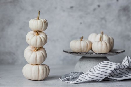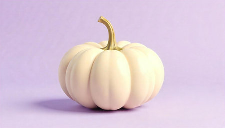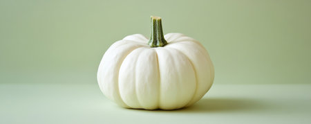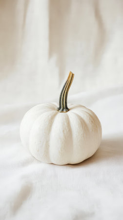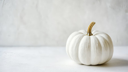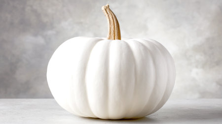 White pumpkin on a light textured background in cloud dancer color, minimal autumn still life with natural tones and soft lighting