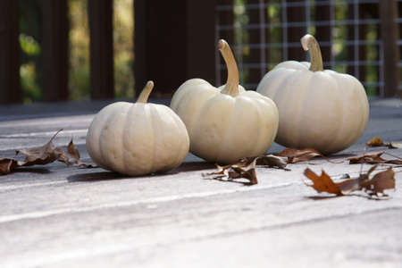 White Pumpkins in the festive season of Fall or Autumn on wooden background.