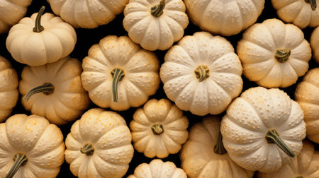 Pumpkin background. Many white pumpkins on a black background.