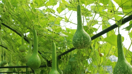 bottle gourd at the farm tunnel in Thailand