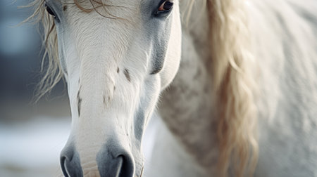 Close-up portrait of a stunning Andalusian horse, showing its elegant features and calm demeanor. The horse's coat is beautifully captured, highlighting the texture and details.