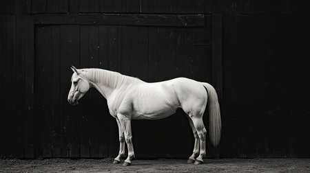photorealistic studio full body portrait of a Bearded white horse on black background. ai generative.