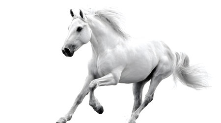 Majestic White Horse Galloping Isolated on White Background