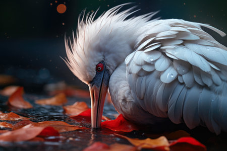 the american white ibis, a majestic wading bird, is beautifully captured in this stunning passport-sized photo, showcasing its striking white plumage, curved bill, and vibrant red eyes, taken with a 50mm lens, highlighting the bird's intricate details in its natural habitat. ai generated