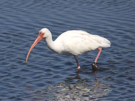 White ibis and blue water