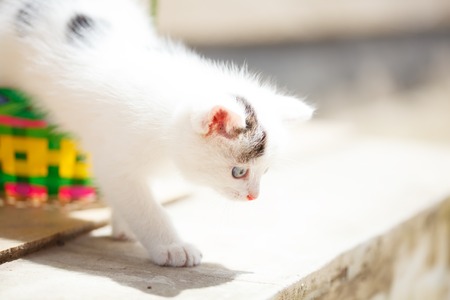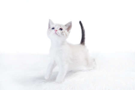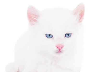 Beautiful white cat with blue eyes on a white bacgkround. Adorable white cat with blue eyes.