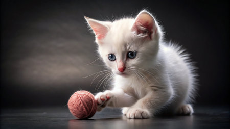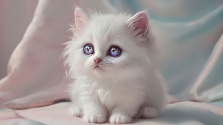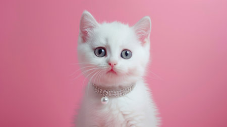 AI Generated. Adorable Fluffy White Kitten on Pink Background