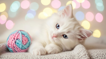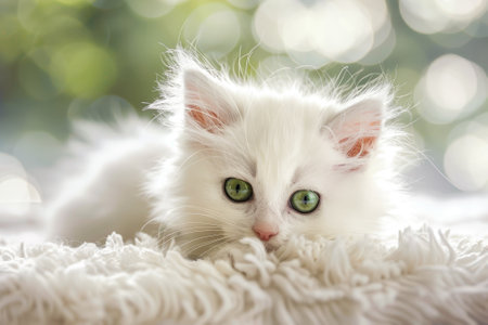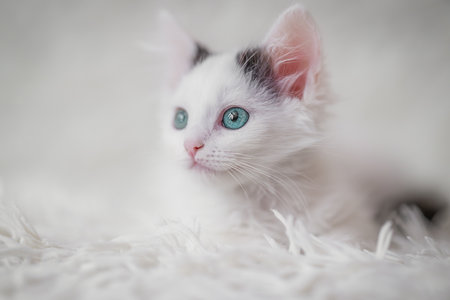 Adorable White Cat with Blue Eyes Resting in Soft Light