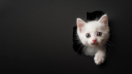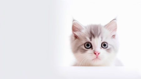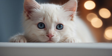 AI Generated. Cute White Kitten Peeking Over Edge with Curious Expression
