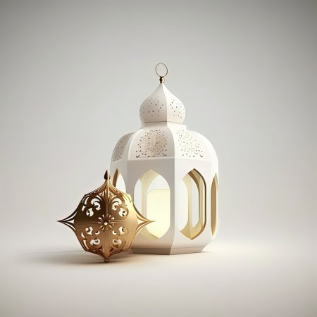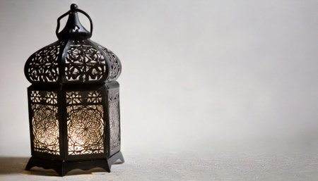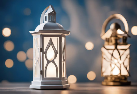 A serene image of a decorative lantern with soft lighting, evoking a sense of peace and tranquility, perfect for Ramadan celebrations.