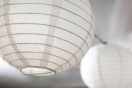 Decorative lantern of metal rods and spherical white paper for indoor lighting