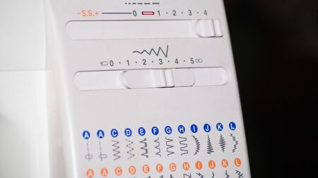 Adjusters of length and character of a stitch on a sewing machine close-up.