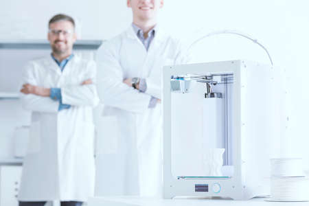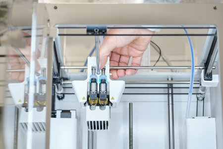 Unrecognizable person changing plastic 3D printer nozzles or extruders.